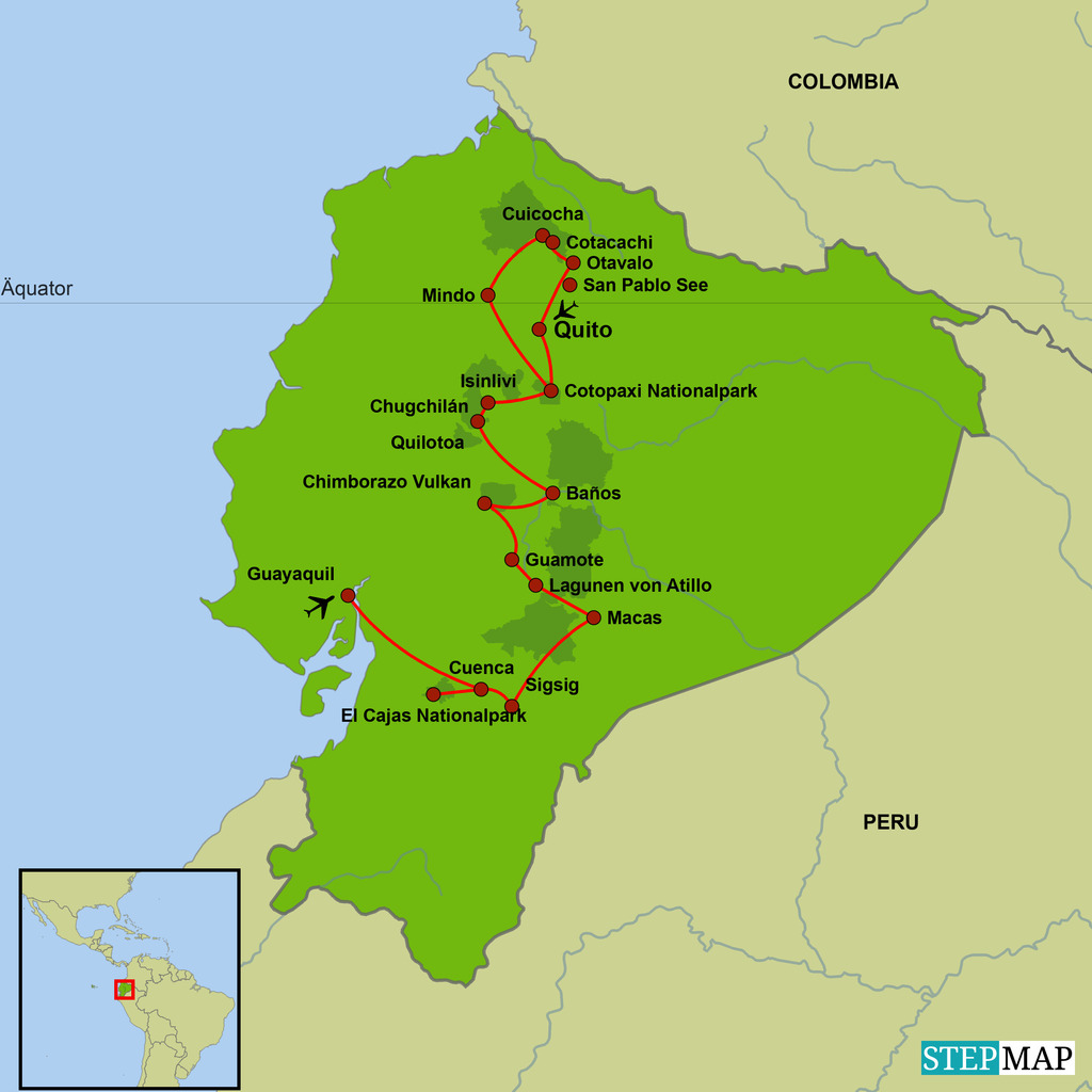 Die gewaltigen schneebedeckten Vulkane der Anden, die bunten Indigene-Märkte, das Leben in entlegenen Bergdörfern in den Anden und ihre Traditionen und der prächtige Nebelwald mit dessen großer Vielfalt.